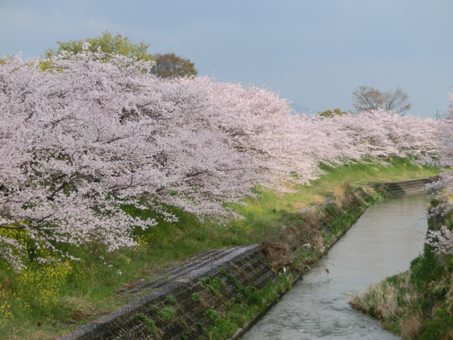 | スタジオ近くの川沿いで桜と菜の花 右上は藤原京の夜桜 左下は霧が多かった朝 | ||||